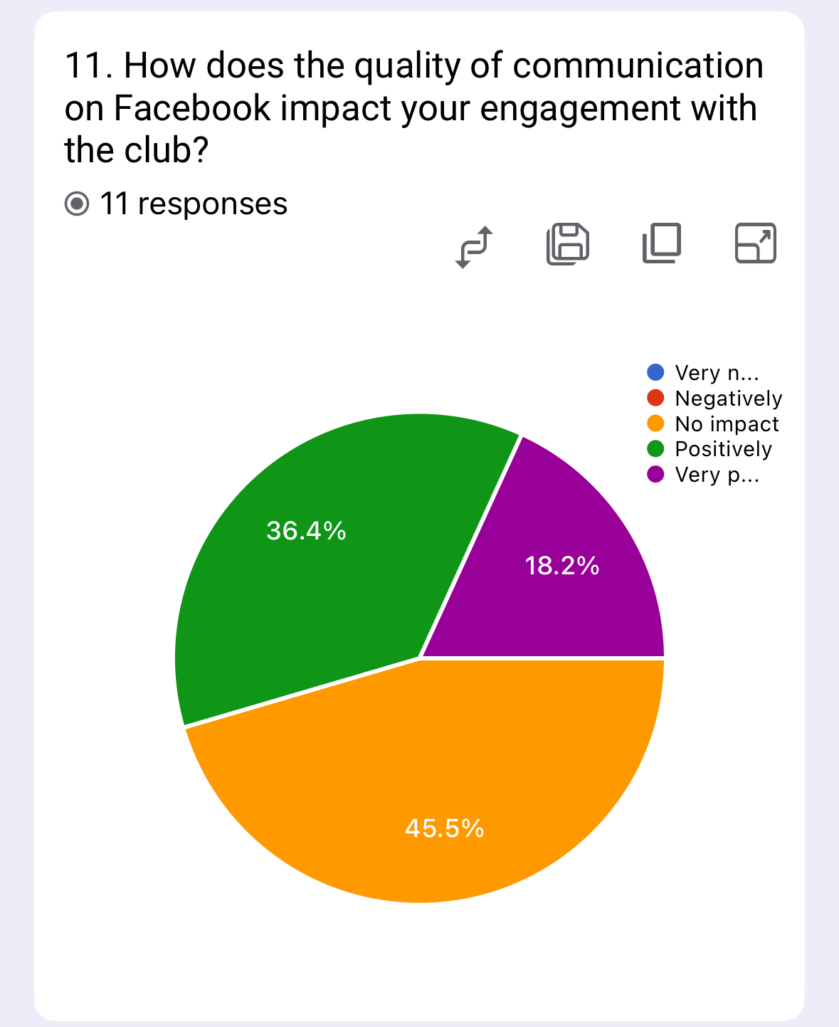 The survey reveals Facebook’s engagement impact is limited, with 45.5% reporting no effect. However, 36.4% experience positive impacts and 18.2% very positive ones, showing potential for improvement.