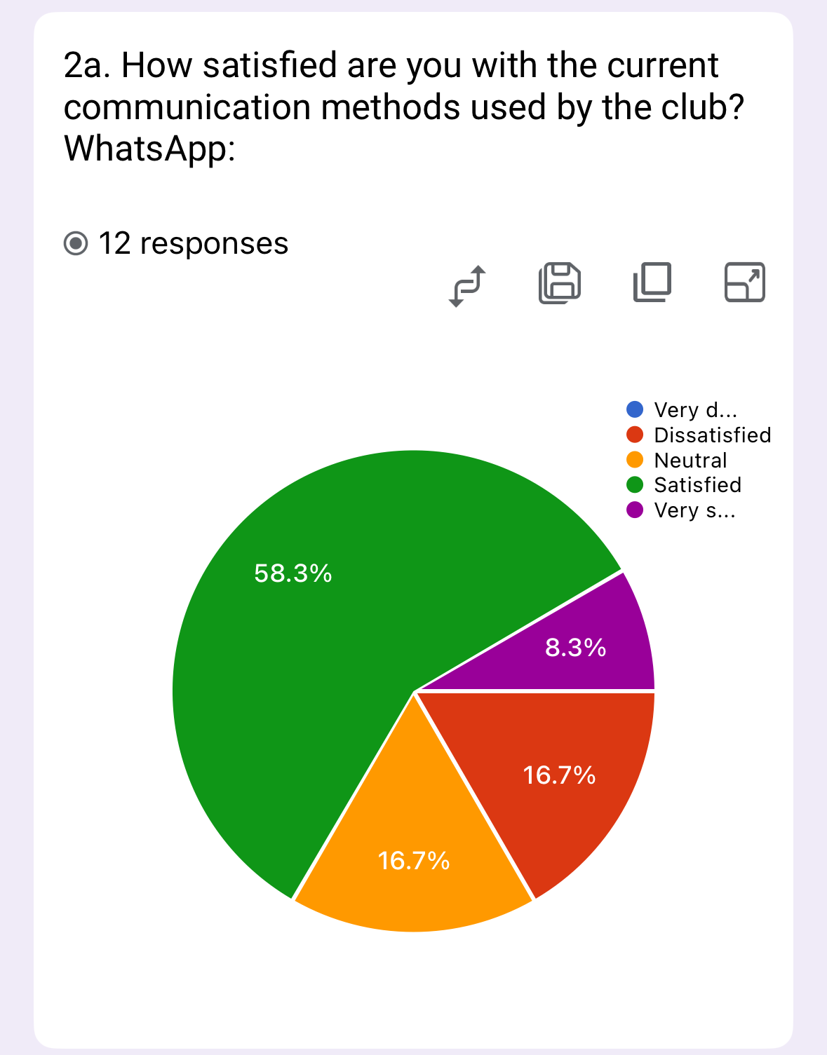 - Consider complementary platforms for members preferring alternative communication styles. The club should aim to convert satisfied users to very satisfied while addressing the notable dissatisfaction minority.